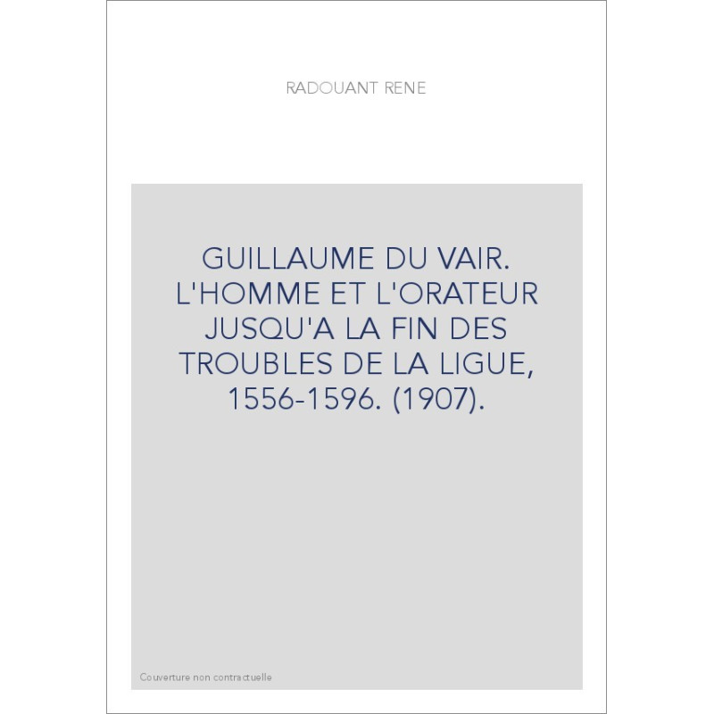 GUILLAUME DU VAIR. L'HOMME ET L'ORATEUR JUSQU'A LA FIN DES TROUBLES DE LA LIGUE, 1556-1596. (1907).