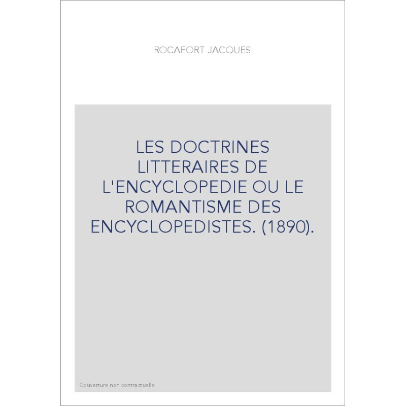 LES DOCTRINES LITTERAIRES DE L'ENCYCLOPEDIE OU LE ROMANTISME DES ENCYCLOPEDISTES. (1890).