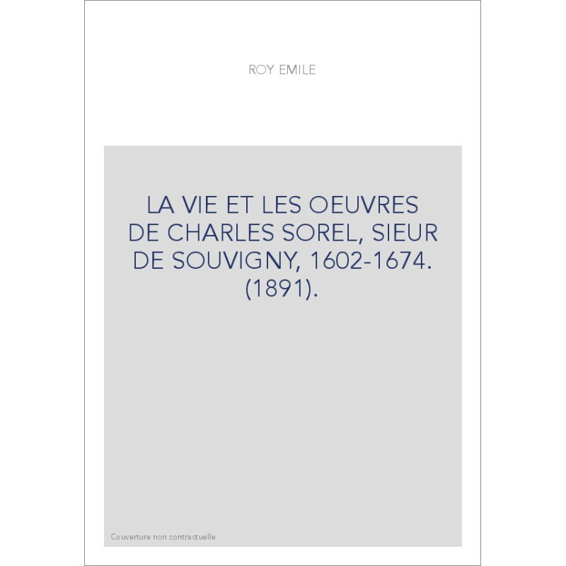 LA VIE ET LES OEUVRES DE CHARLES SOREL, SIEUR DE SOUVIGNY, 1602-1674. (1891).
