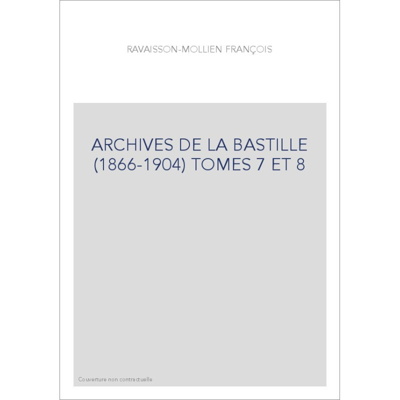 ARCHIVES DE LA BASTILLE (1866-1904) TOMES 7 ET 8