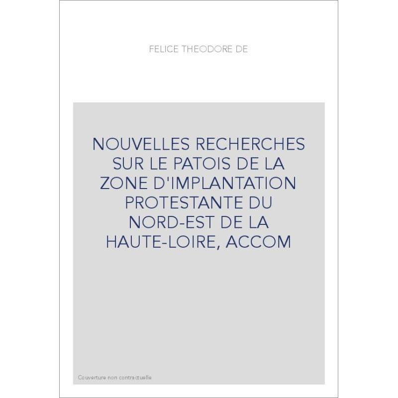 NOUVELLES RECHERCHES SUR LE PATOIS DE LA ZONE D'IMPLANTATION PROSTESTANTE DU NORD-EST ET DE LA