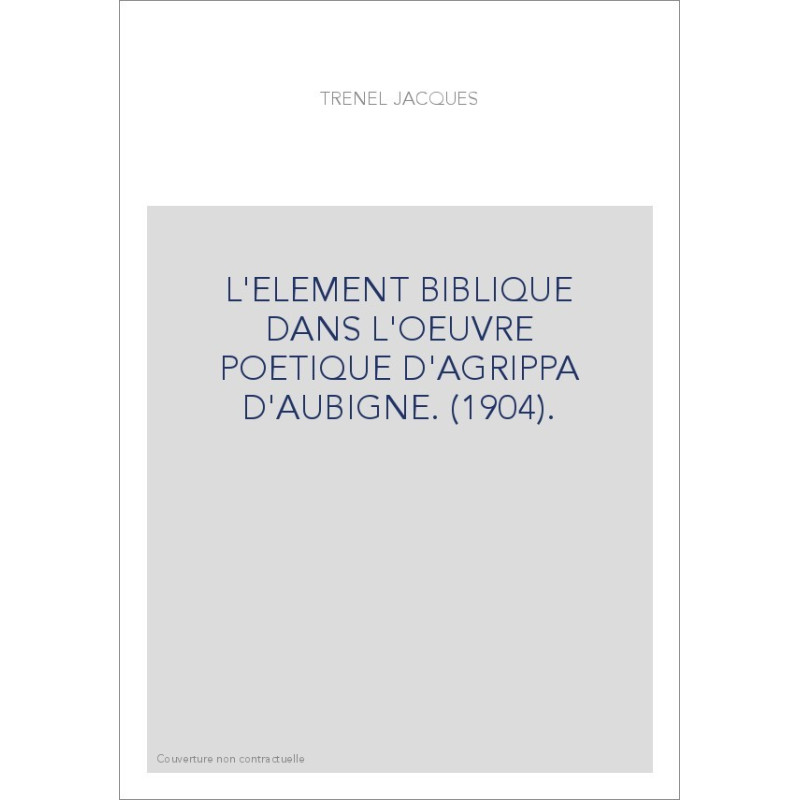 L'ELEMENT BIBLIQUE DANS L'OEUVRE POETIQUE D'AGRIPPA D'AUBIGNE. (1904).