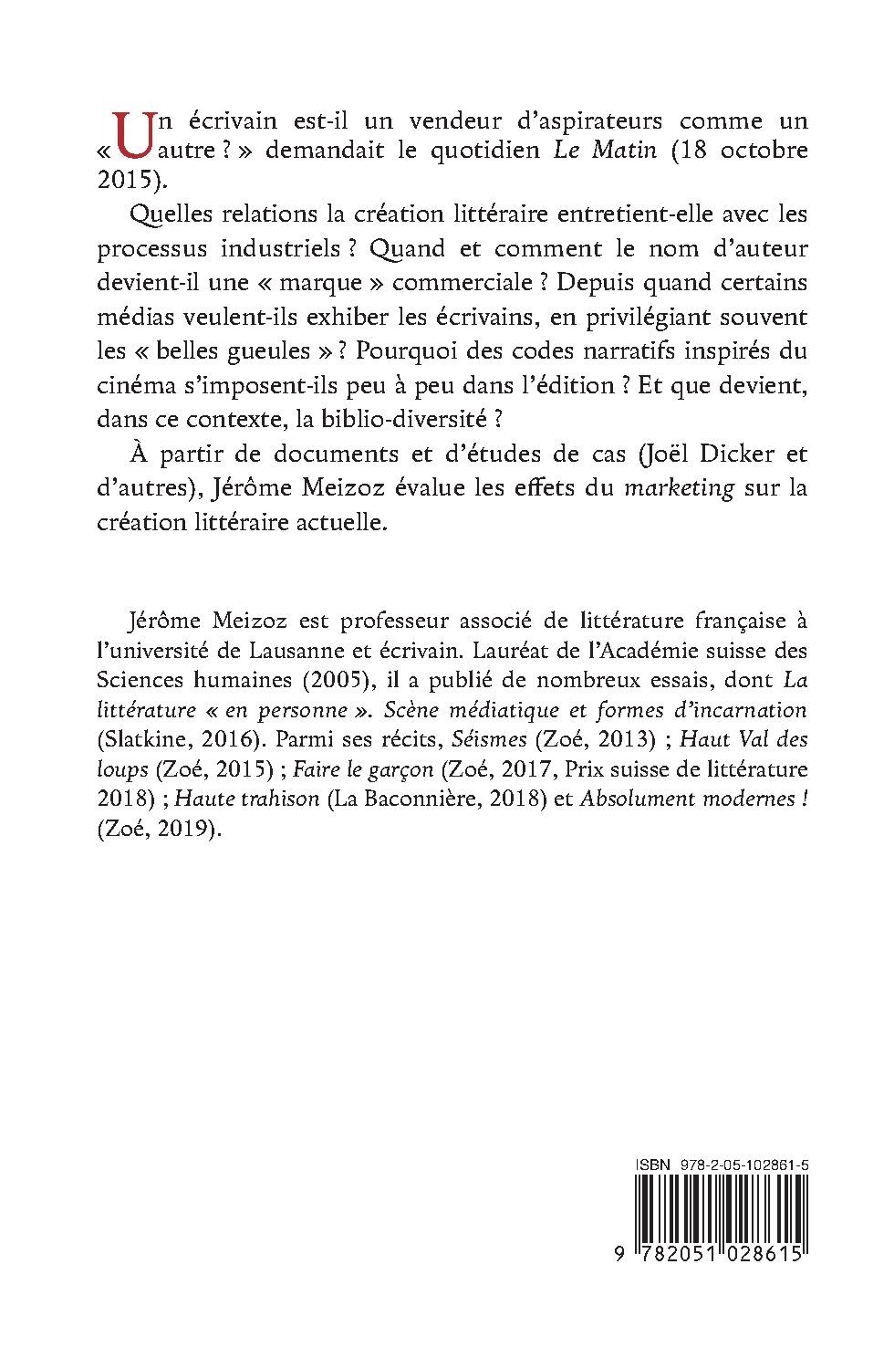 Quelles relations la création littéraire entretient-elle avec les processus industriels ? Quand et comment le nom d’auteur devient-il une « marque » commerciale ? Depuis quand certains médias veulent-ils exhiber les écrivains, en privilégiant souvent les « belles gueules » ? Pourquoi des codes narratifs inspirés du cinéma s’imposent-ils peu à peu dans l’édition ? Et que devient, dans ce contexte, la biblio-diversité ?