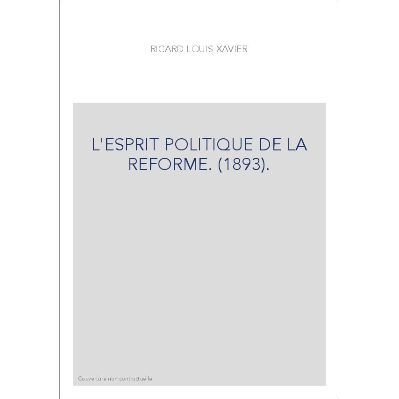 L'ESPRIT POLITIQUE DE LA REFORME. (1893).
