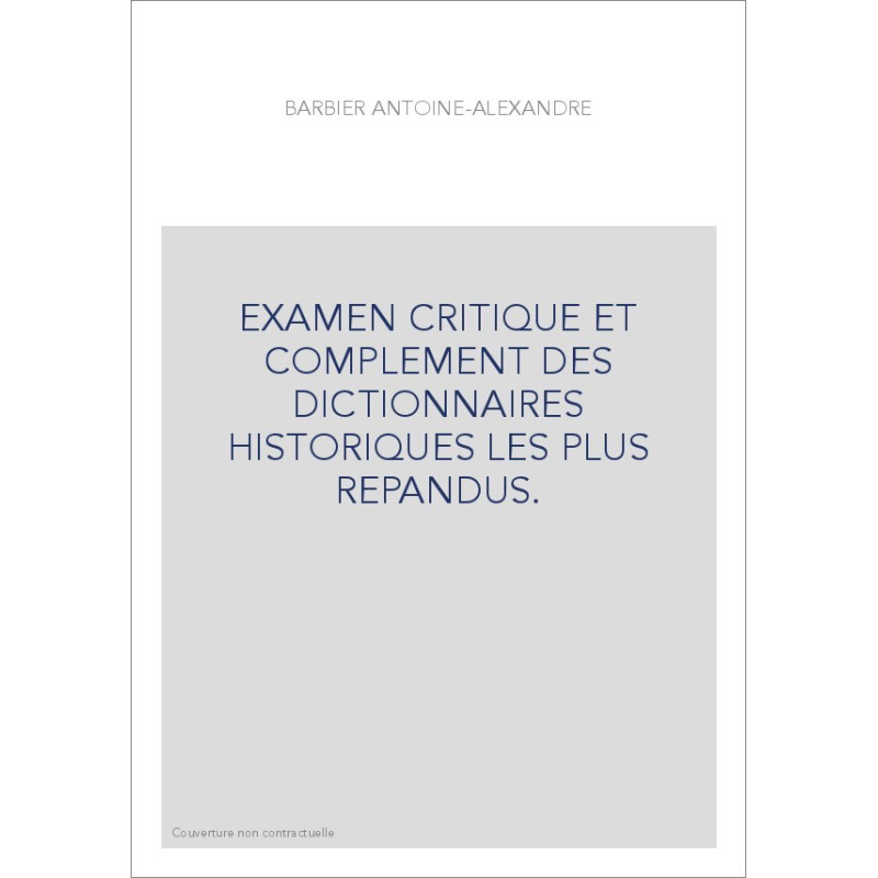 EXAMEN CRITIQUE ET COMPLEMENT DES DICTIONNAIRES HISTORIQUES LES PLUS REPANDUS.