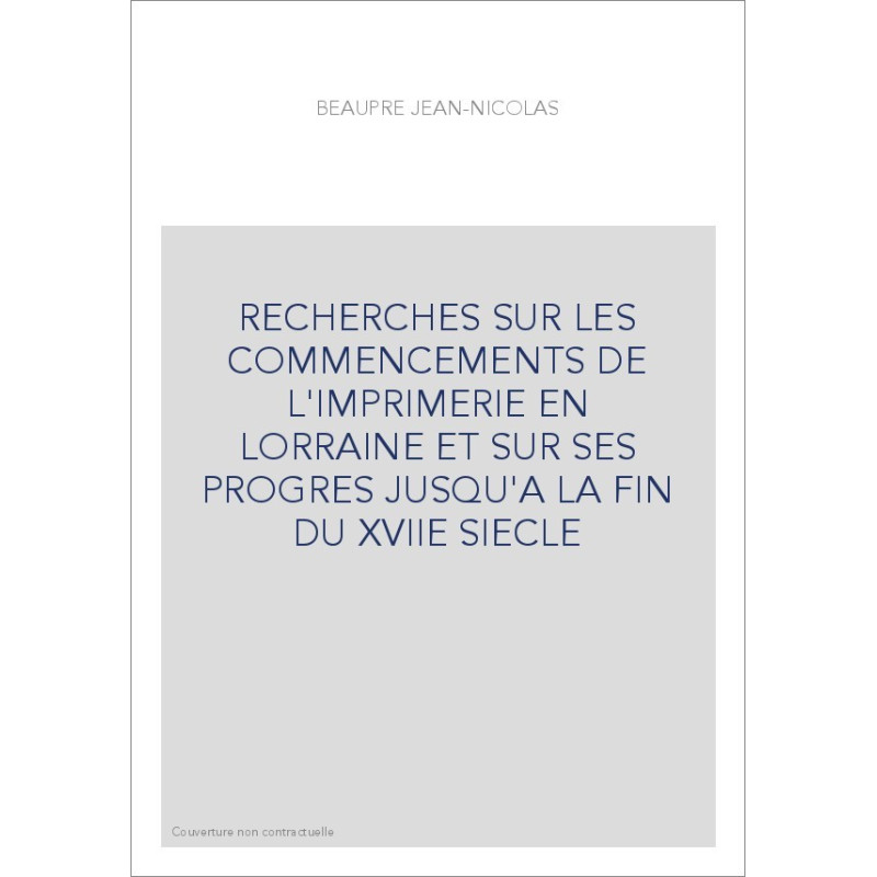 RECHERCHES SUR LES COMMENCEMENTS DE L'IMPRIMERIE EN LORRAINE ET SUR SES PROGRES JUSQU'A LA FIN DU XVIIE SIECLE