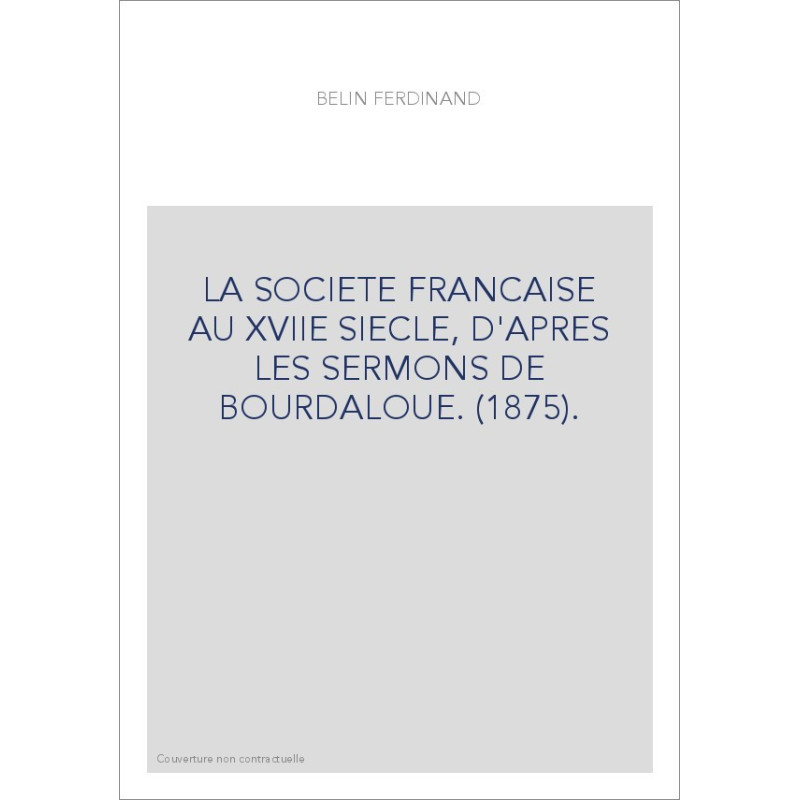 LA SOCIETE FRANCAISE AU XVIIE SIECLE, D'APRES LES SERMONS DE BOURDALOUE. (1875). View larger