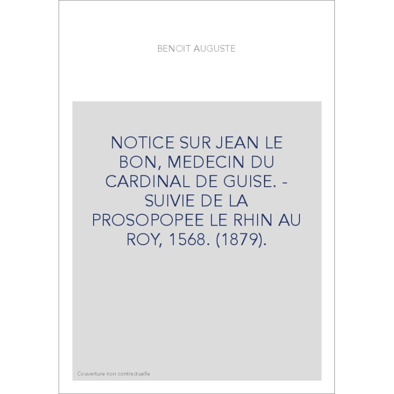 NOTICE SUR JEAN LE BON, MEDECIN DU CARDINAL DE GUISE. - SUIVIE DE LA PROSOPOPEE LE RHIN AU ROY, 1568. (1879).