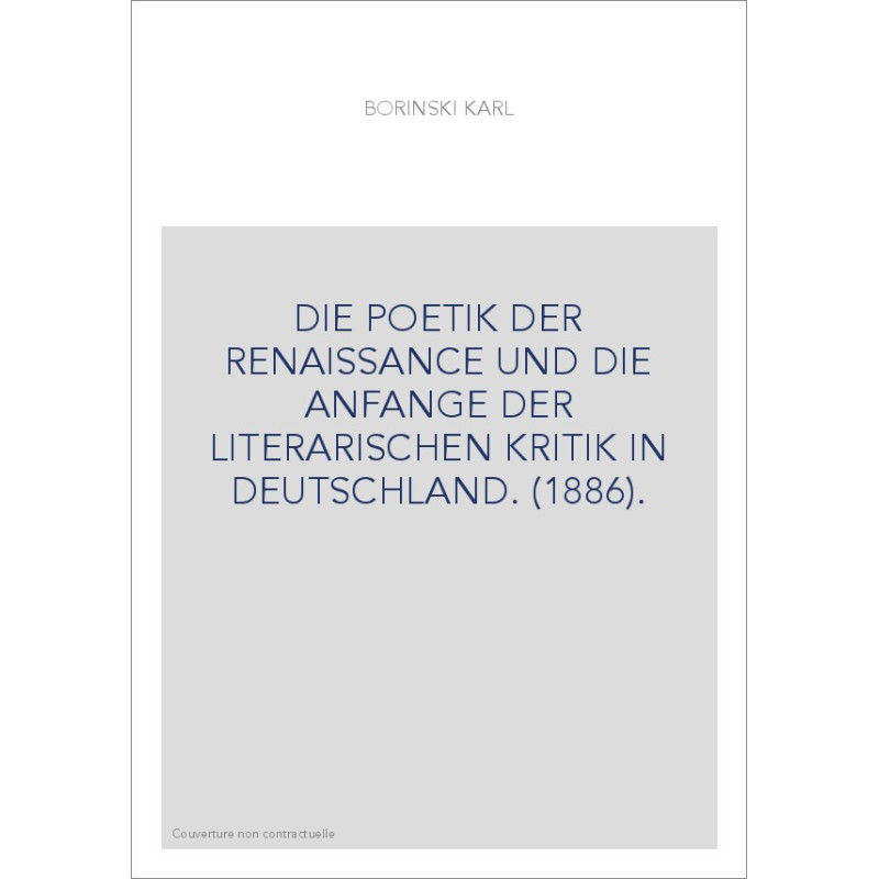 DIE POETIK DER RENAISSANCE UND DIE ANFANGE DER LITERARISCHEN KRITIK IN DEUTSCHLAND. (1886).