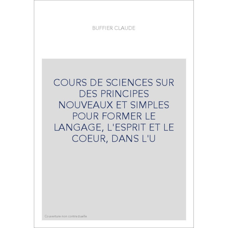 COURS DE SCIENCES SUR DES PRINCIPES NOUVEAUX ET SIMPLES POUR FORMER LE LANGAGE, L'ESPRIT ET LE COEUR, DANS L'U
