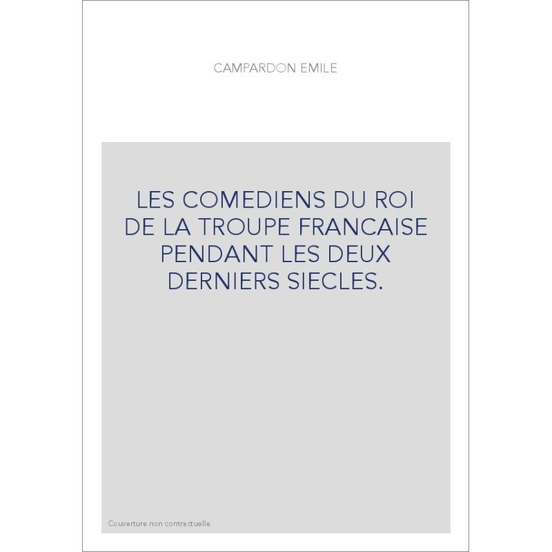 LES COMEDIENS DU ROI DE LA TROUPE FRANCAISE PENDANT LES DEUX DERNIERS SIECLES.