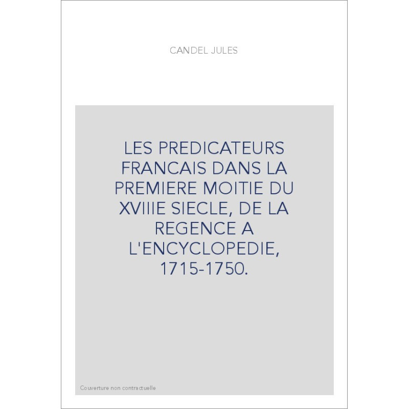 LES PREDICATEURS FRANCAIS DANS LA PREMIERE MOITIE DU XVIIIE SIECLE, DE LA REGENCE A L'ENCYCLOPEDIE, 1715-1750.