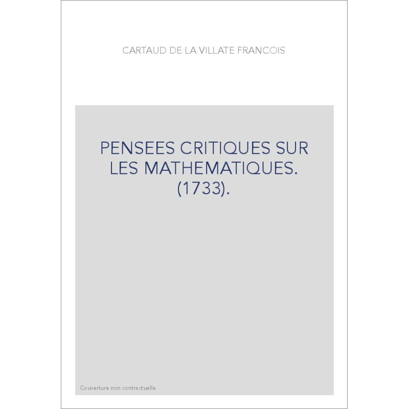 PENSEES CRITIQUES SUR LES MATHEMATIQUES. (1733).