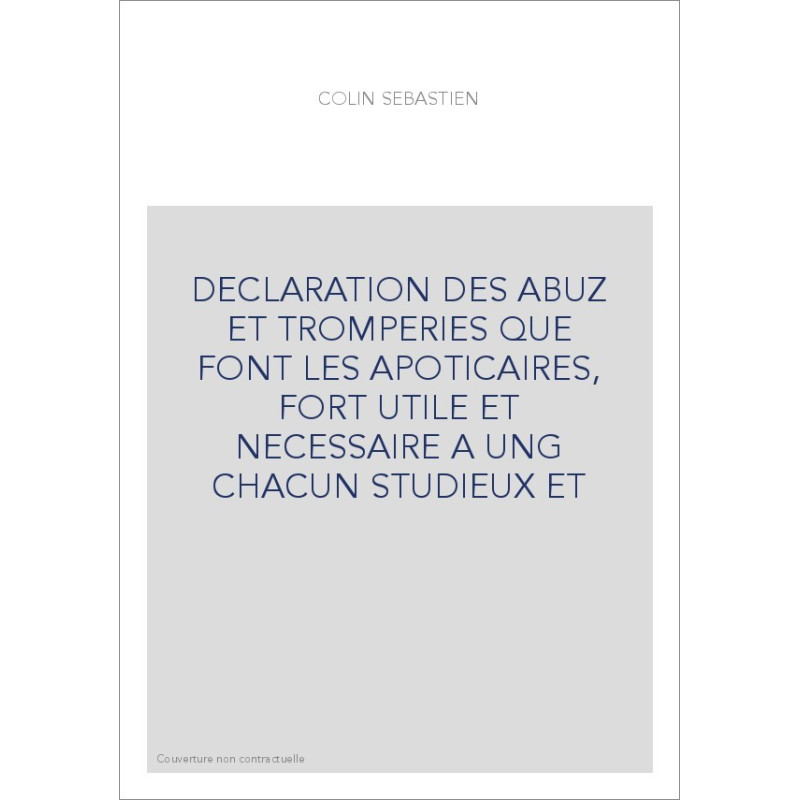 DECLARATION DES ABUZ ET TROMPERIES QUE FONT LES APOTICAIRES, FORT UTILE ET NECESSAIRE A UNG CHACUN STUDIEUX ET