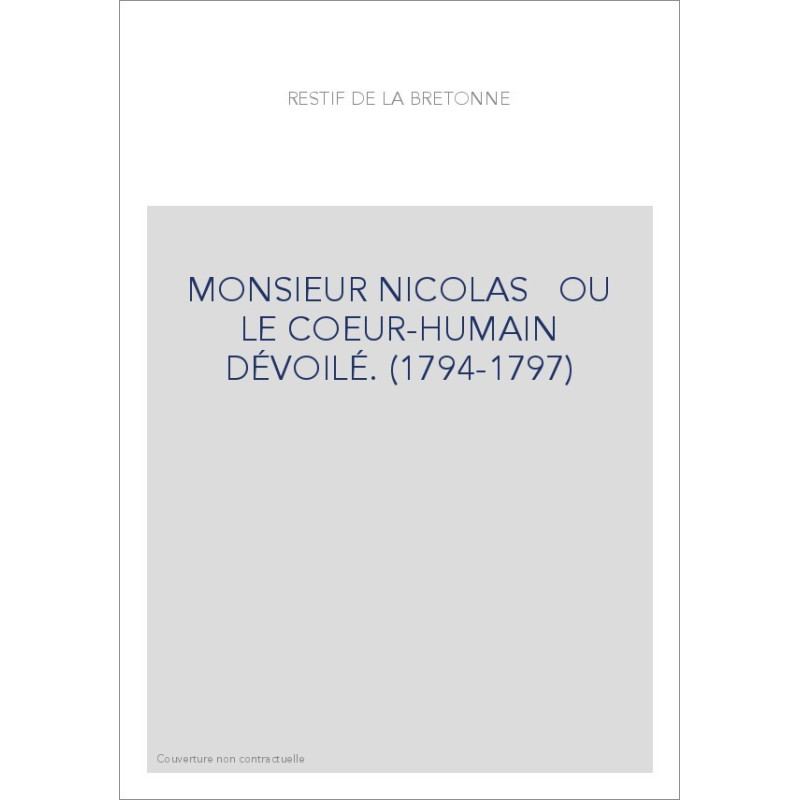 MONSIEUR NICOLAS OU LE COEUR-HUMAIN DÉVOILÉ. (1794-1797)