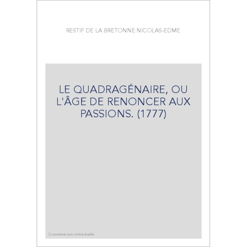 LE QUADRAGÉNAIRE, OU L'ÂGE DE RENONCER AUX PASSIONS. (1777)