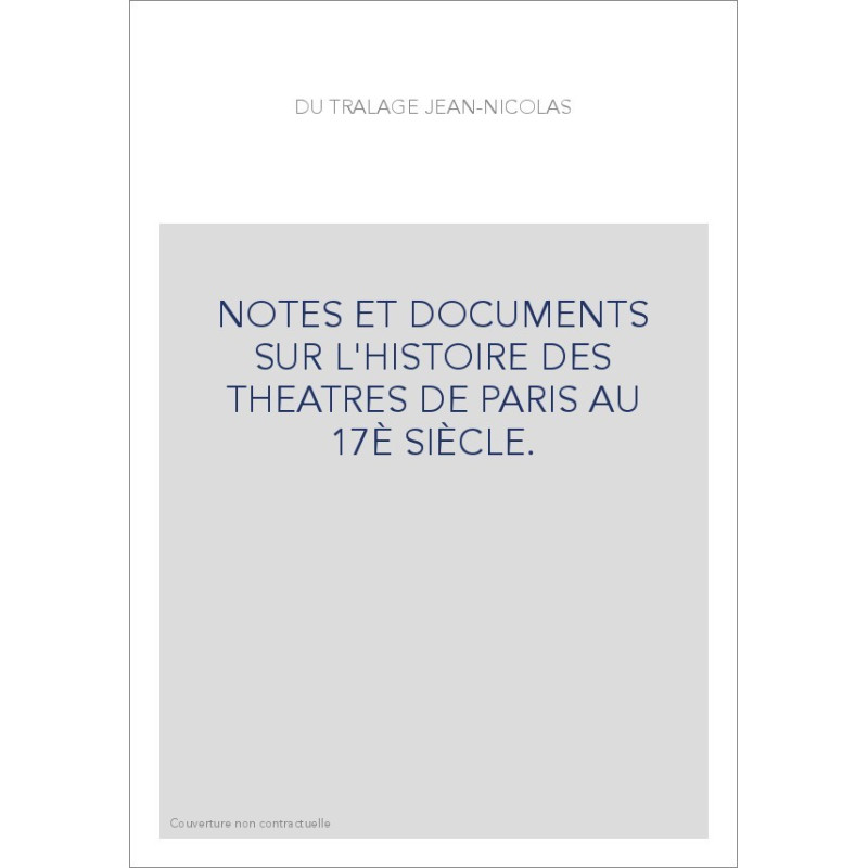 NOTES ET DOCUMENTS SUR L'HISTOIRE DES THEATRES DE PARIS AU 17È SIÈCLE.