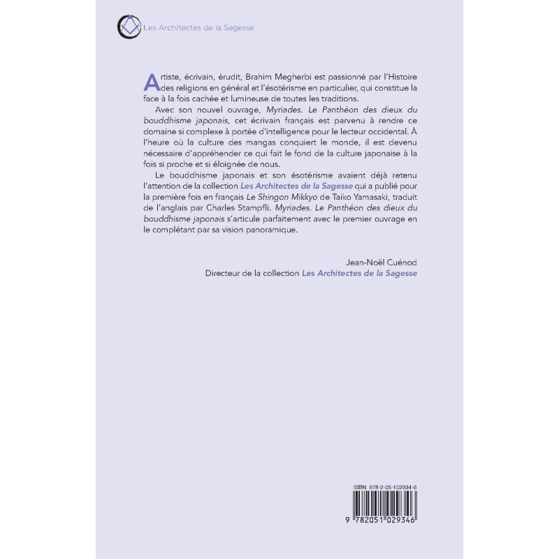 Le bouddhisme japonais et son ésotérisme avaient déjà retenu l’attention de la collection Les Architectes de la Sagesse qui a publié pour la première fois en français Le Shingon Mikkyo de Taiko Yamasaki, traduit de l’anglais par Charles Stampfli. Myriades. Le Panthéon des dieux du bouddhisme japonais s’articule parfaitement avec le premier ouvrage en le complétant par sa vision panoramique.