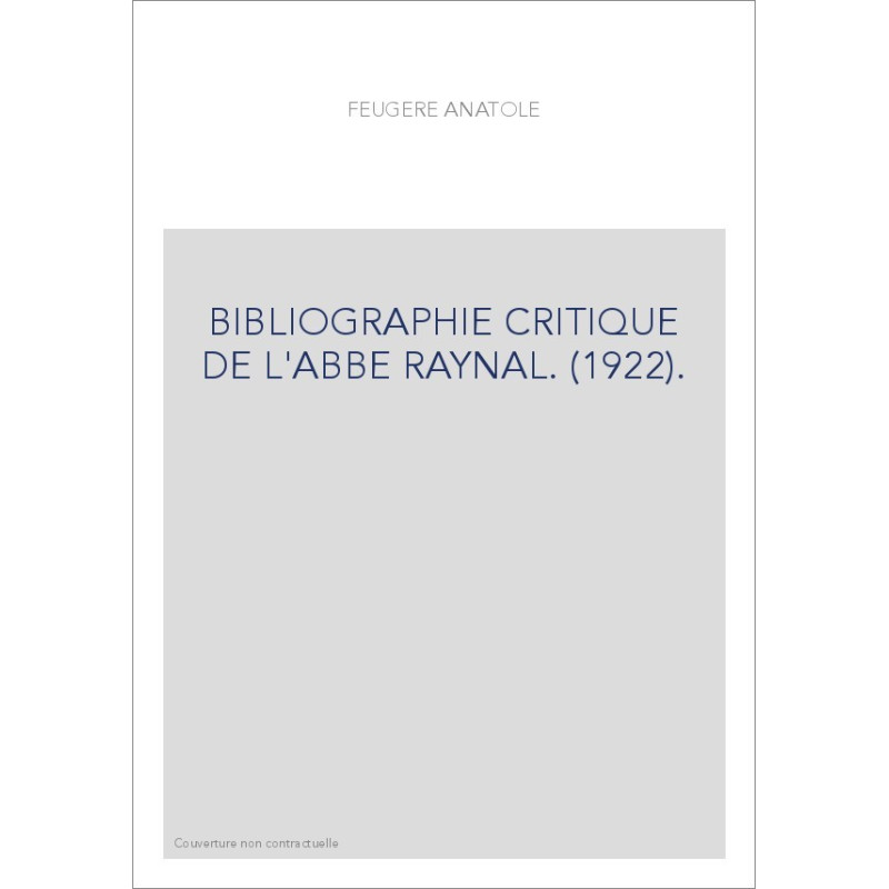 BIBLIOGRAPHIE CRITIQUE DE L'ABBE RAYNAL. (1922).