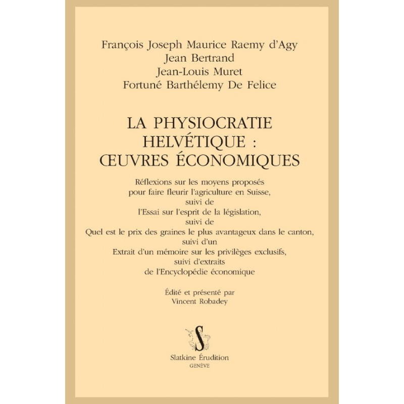 – Se questionner sur les spécificités helvétiques et sur les réappropriations de la « science économique » française grâce au modèle préexistant des circulations agronomiques. Sans être une réponse définitive, le cheminement offert au lecteur par cette édition scientifique accompagne les circulations de la physiocratie française en Suisse jusqu’à une synthèse encyclopédique inédite qui clôt ce parcours éditorial.