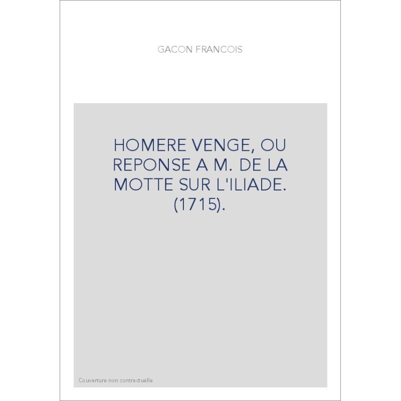 HOMERE VENGE, OU REPONSE A M. DE LA MOTTE SUR L'ILIADE. (1715).