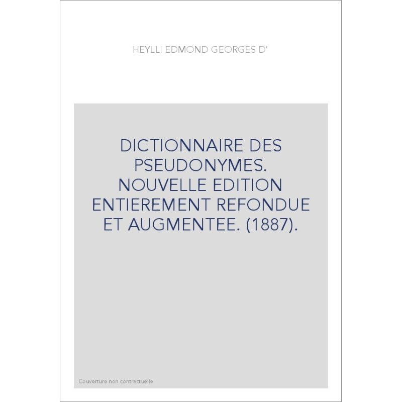 DICTIONNAIRE DES PSEUDONYMES. NOUVELLE EDITION ENTIEREMENT REFONDUE ET AUGMENTEE. (1887).