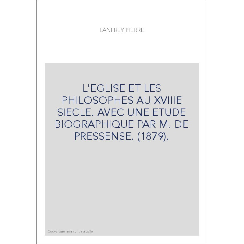 L'EGLISE ET LES PHILOSOPHES AU XVIIIE SIECLE. AVEC UNE ETUDE BIOGRAPHIQUE PAR M. DE PRESSENSE. (1879).
