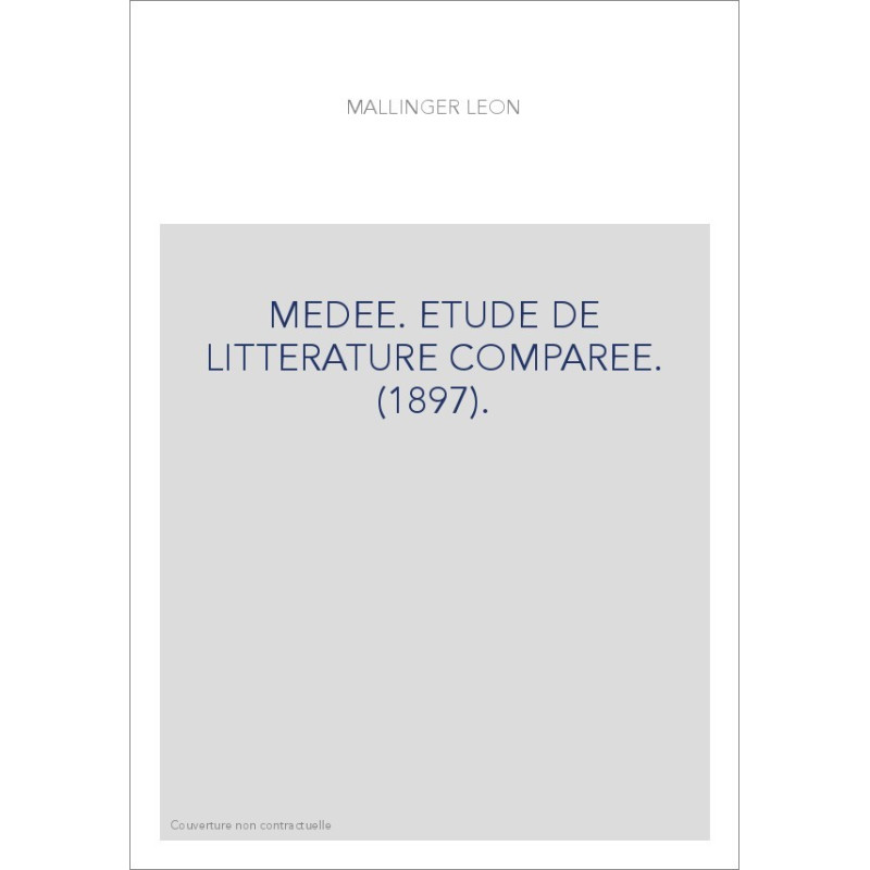 MEDEE. ETUDE DE LITTERATURE COMPAREE. (1897).
