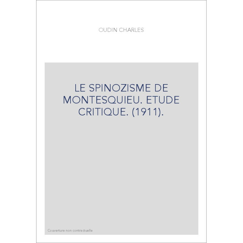 LE SPINOZISME DE MONTESQUIEU. ETUDE CRITIQUE. (1911).