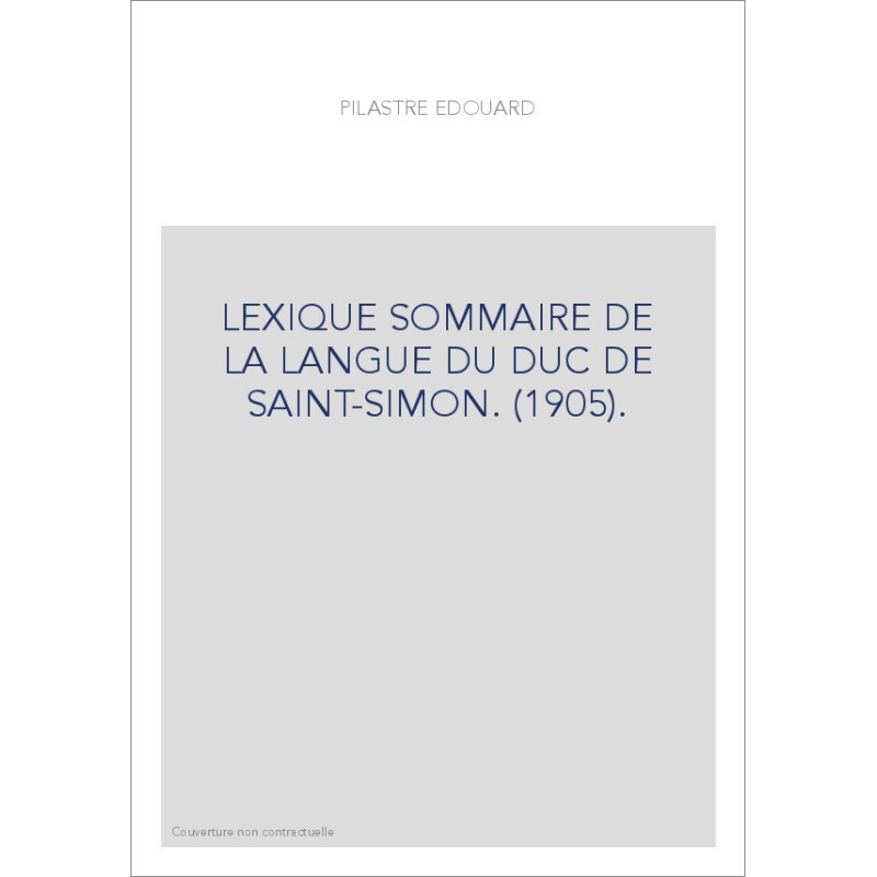 LEXIQUE SOMMAIRE DE LA LANGUE DU DUC DE SAINT-SIMON. (1905).