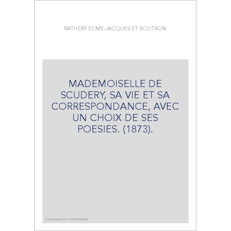 MADEMOISELLE DE SCUDERY, SA VIE ET SA CORRESPONDANCE, AVEC UN CHOIX DE SES POESIES. (1873).