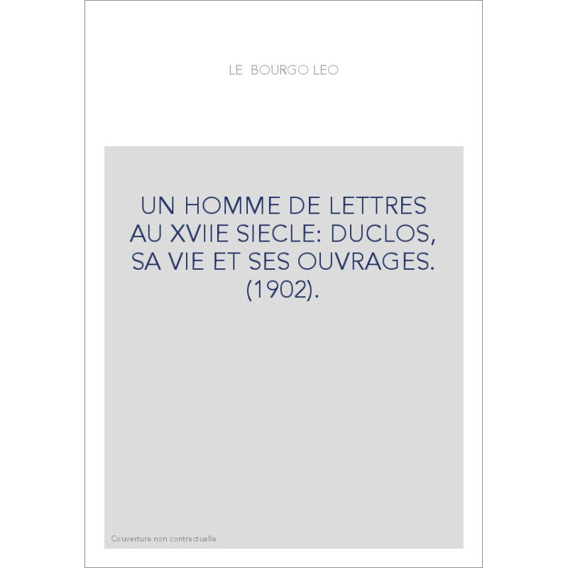 UN HOMME DE LETTRES AU XVIIE SIECLE: DUCLOS, SA VIE ET SES OUVRAGES. (1902).