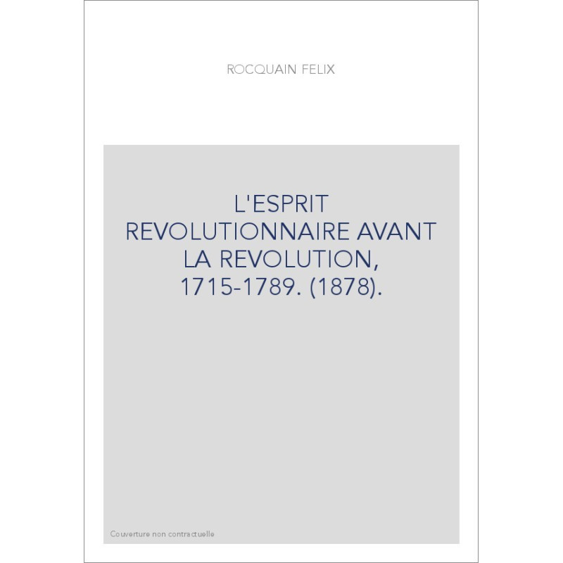 L'ESPRIT REVOLUTIONNAIRE AVANT LA REVOLUTION, 1715-1789. (1878).
