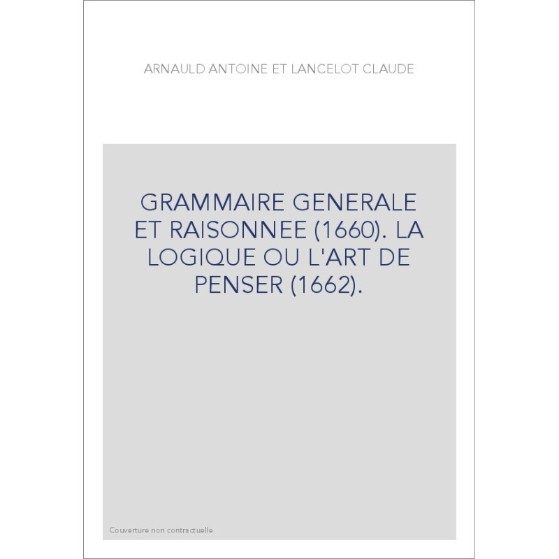 GRAMMAIRE GENERALE ET RAISONNEE (1660). LA LOGIQUE OU L'ART DE PENSER (1662).