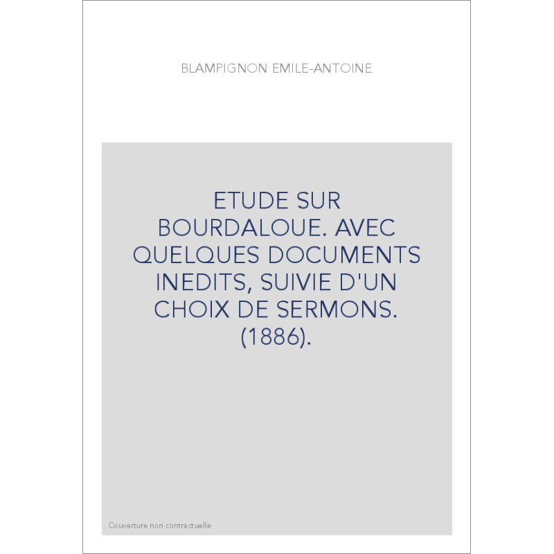 ETUDE SUR BOURDALOUE. AVEC QUELQUES DOCUMENTS INEDITS, SUIVIE D'UN CHOIX DE SERMONS. (1886).