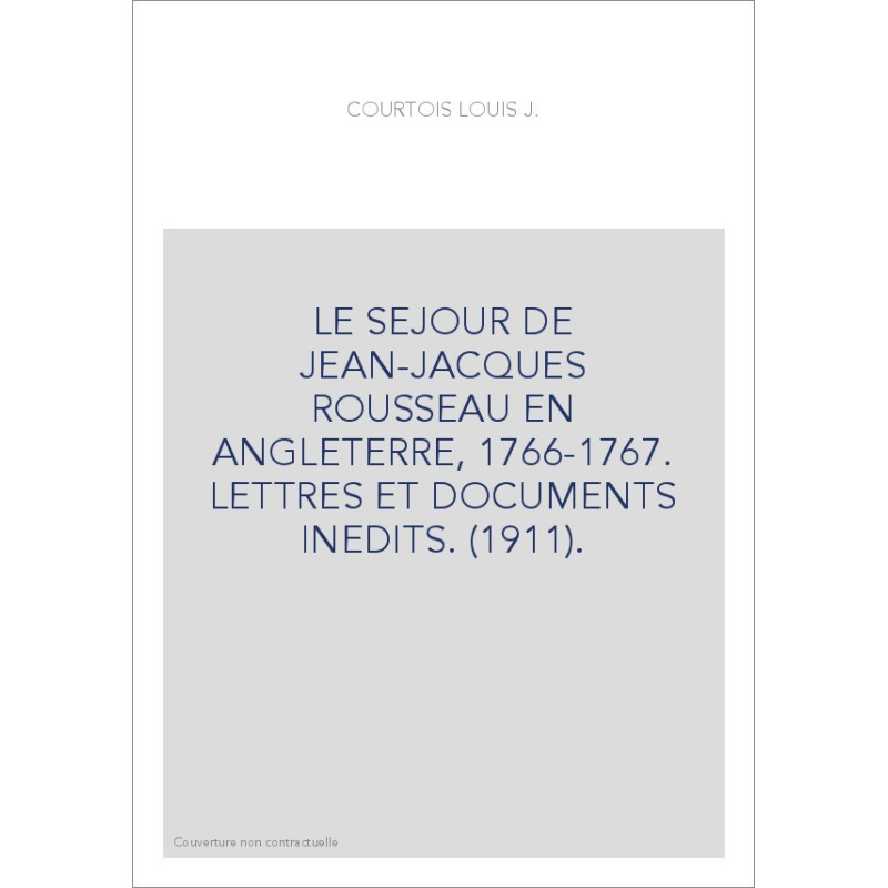 LE SEJOUR DE JEAN-JACQUES ROUSSEAU EN ANGLETERRE, 1766-1767. LETTRES ET DOCUMENTS INEDITS. (1911).