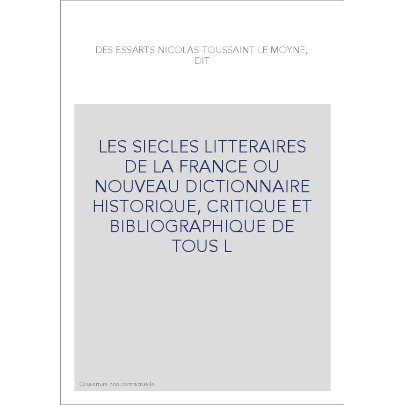 LES SIECLES LITTERAIRES DE LA FRANCE OU NOUVEAU DICTIONNAIRE HISTORIQUE, CRITIQUE ET BIBLIOGRAPHIQUE DE TOUS L