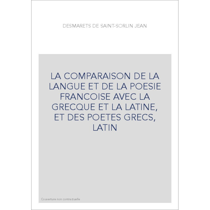 LA COMPARAISON DE LA LANGUE ET DE LA POESIE FRANCOISE AVEC LA GRECQUE ET LA LATINE, ET DES POETES GRECS, LATIN