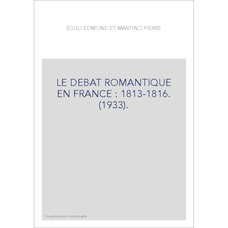 LE DEBAT ROMANTIQUE EN FRANCE : 1813-1816. (1933).