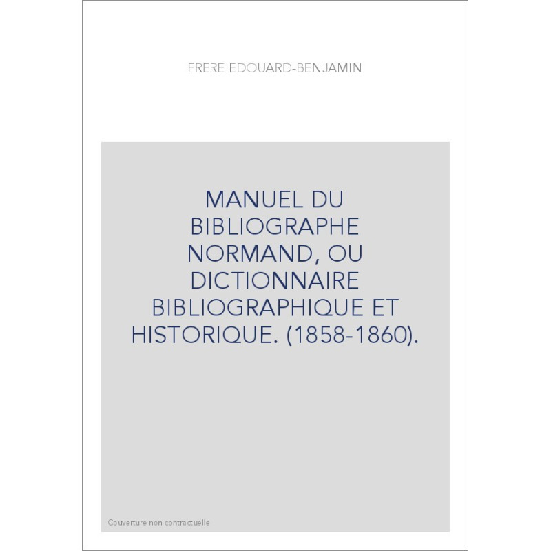MANUEL DU BIBLIOGRAPHE NORMAND, OU DICTIONNAIRE BIBLIOGRAPHIQUE ET HISTORIQUE. (1858-1860).