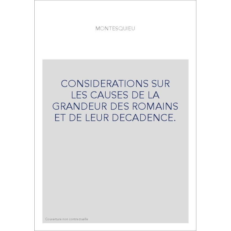 CONSIDERATIONS SUR LES CAUSES DE LA GRANDEUR DES ROMAINS ET DE LEUR DECADENCE.