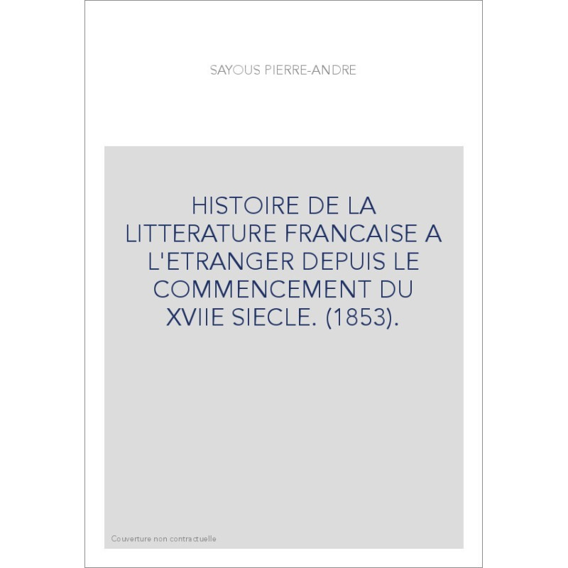HISTOIRE DE LA LITTERATURE FRANCAISE A L'ETRANGER DEPUIS LE COMMENCEMENT DU XVIIE SIECLE. (1853).