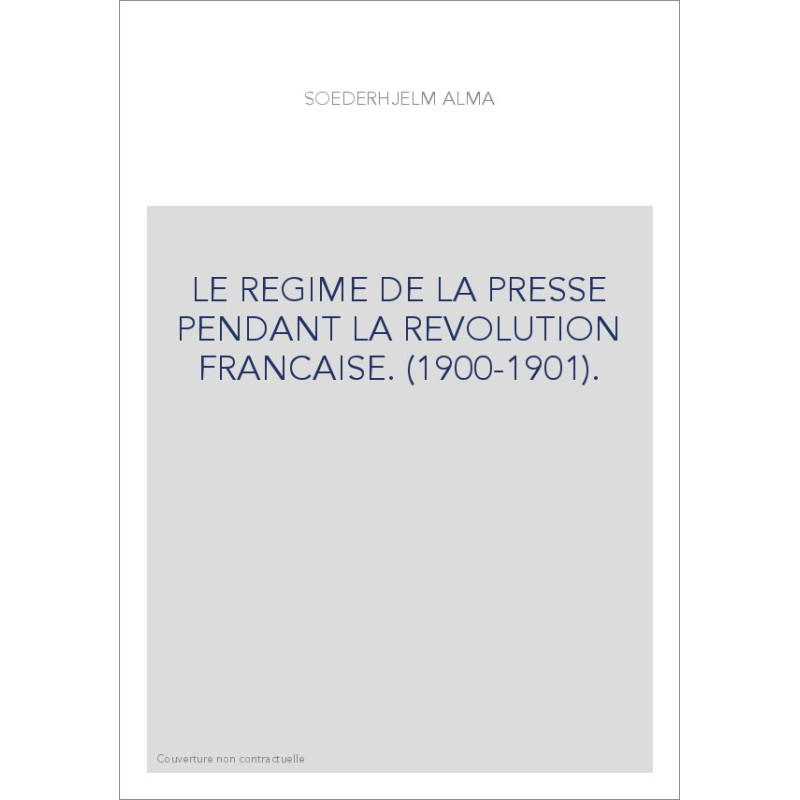 LE REGIME DE LA PRESSE PENDANT LA REVOLUTION FRANCAISE. (1900-1901).