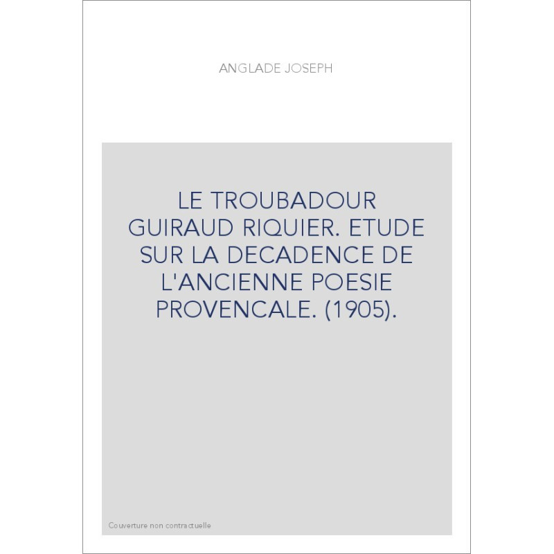 LE TROUBADOUR GUIRAUD RIQUIER. ETUDE SUR LA DECADENCE DE L'ANCIENNE POESIE PROVENCALE. (1905).
