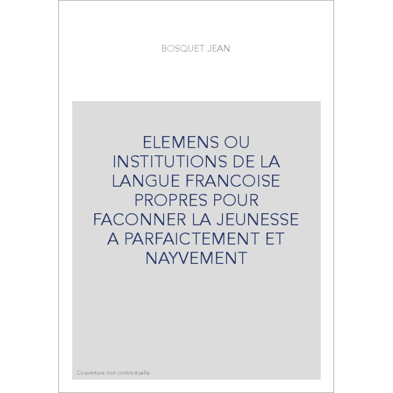 ELEMENS OU INSTITUTIONS DE LA LANGUE FRANCOISE PROPRES POUR FACONNER LA JEUNESSE A PARFAICTEMENT ET NAYVEMENT