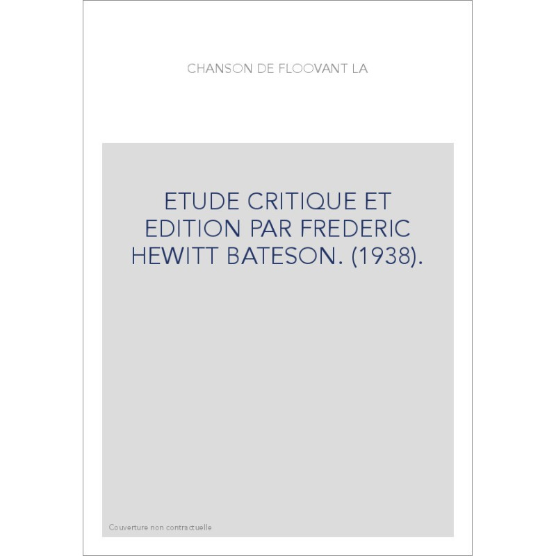 LA CHANSON DE FLOOVANT. ETUDE CRITIQUE ET EDITION PAR FREDERIC HEWITT BATESON. (1938).