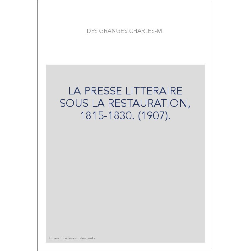 LA PRESSE LITTERAIRE SOUS LA RESTAURATION, 1815-1830. (1907).