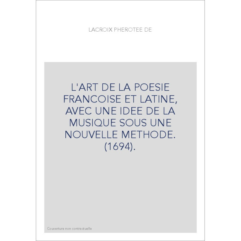 L'ART DE LA POESIE FRANCOISE ET LATINE, AVEC UNE IDEE DE LA MUSIQUE SOUS UNE NOUVELLE METHODE. (1694).