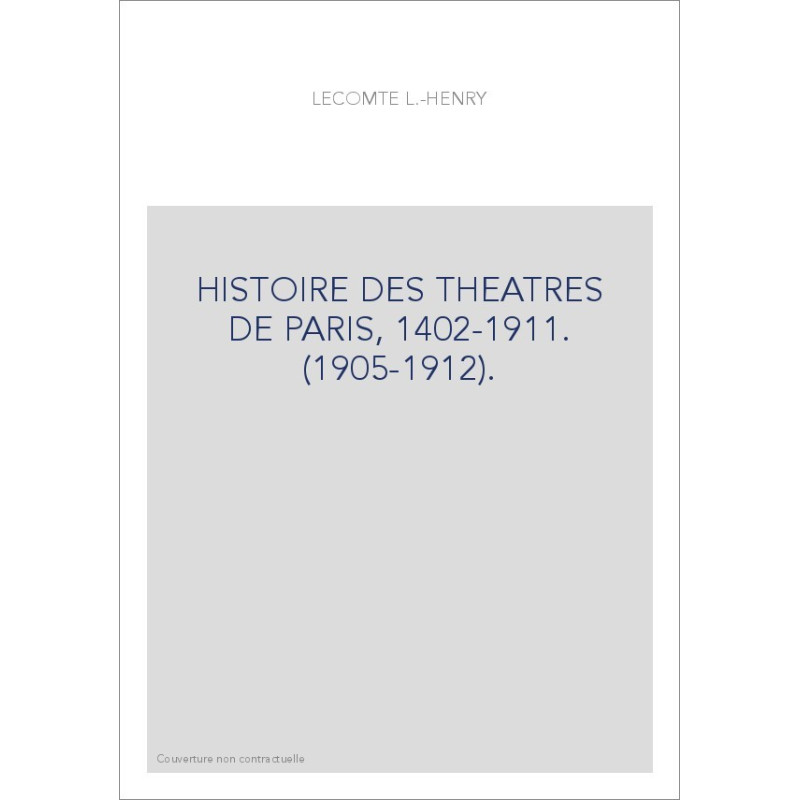 HISTOIRE DES THEATRES DE PARIS, 1402-1911. (1905-1912).