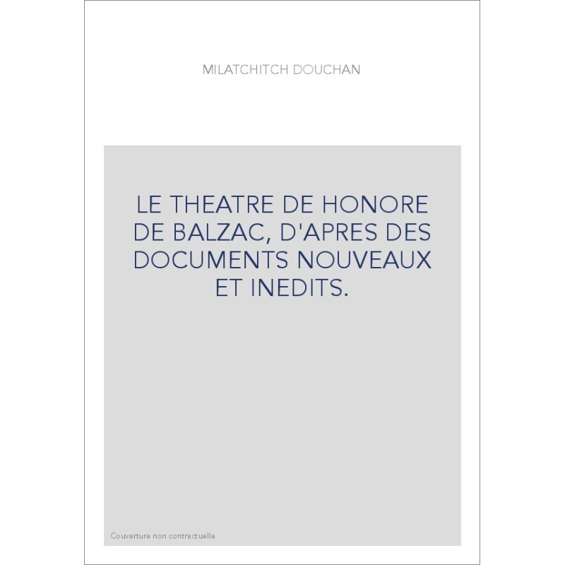 LE THEATRE DE HONORE DE BALZAC, D'APRES DES DOCUMENTS NOUVEAUX ET INEDITS.